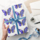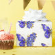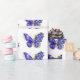 Bijoux, bleu, saphir, papillon aux fleurs pétillantes avec aile décorée de bleu, fleurs précieuses avec feuilles d'or sur arrière - plan blanc.
