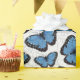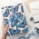 Design motif sans couture avec papillons morpho bleu sur hydrangea fleurs en lin arrière - plan.