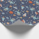 papier d'emballage Espace-orienté avec un motif des astronautes de paresse flottant dans l'espace parmi des vaisseaux spatiaux, des vaisseaux spatiaux étrangers, des planètes, des étoiles filantes, et des lunes.