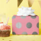 Enveloppez vos cadeaux avec style avec cette parties scintillant en argent et pois de taille moyenne rose sur papier d'emballage. Idéal pour Noël, cadeaux et baby showers de fête.
