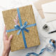 Ajoutez une touche brillante sous votre sapin de Noël avec ce papier d'emballage motif en or à damiers personnalisé. L'écharpe cadeau a un arrière - plan de faux feuille d'or et de faux parties scintillant d'or. Il y a aussi des zones pour un nom de famille monogrammed optionnel ou un autre texte. Fait un grand ajout personnalisé à un cadeau de Noël ou autre cadeau de vacances!