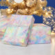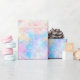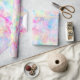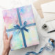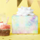 Ce papier d'emballage cadeau présente un magnifique tourbillon de couleurs pastel à teinture cravate arc-en-ciel avec de subtiles images holographiques, irisées et aquarelles.