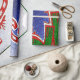 Cette image est un ensemble de patins à glace dans les couleurs de Noël de rouge, vert et blanc. Un dossier bleu et blanc avec parties scintillant a été ajouté à ce design. Une bordure rouge et verte avec parties scintillant a également été ajoutée. Cette enveloppe-cadeau est disponible en styles et tailles assortis.