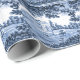 Maison de l'époque victorienne avec paysage en dessin bleu. Le chien court à travers la pelouse tandis que le couple habillé victorien est assis sur le banc sur la pelouse.
