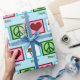 Beau papier d'emballage pour un anniversaire équestre. Un signe de paix, coeur, et de jolis chevaux motif pour les cadeaux d'équitation.