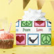 Papier d'emballage Peace Love Pilates. Un joli enveloppement cadeau d'instructeur de pilates avec un signe de paix, le coeur et la femme s'étirant sur une balle d'exercice. Parfait pour les anniversaires ou les cadeaux de Noël.