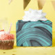 Des tourbillons de teintes profondes dans un thème noir et turquoise foncé classe. (Cette version de la conception est dimensionnée à une largeur de 18 po par répétition unique pour correspondre au mieux à la façon dont les rouleaux de papier d'emballage sont imprimés.)