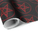 Pentagramme rouge, inversé, texturé en cercle, sur arrière - plan noir. Symbole occulte 666