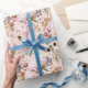 Magnifique papier d'emballage cadeau tout temps parfait pour les mariages, anniversaires et anniversaires. Comprend un arrière - plan de pêche rustique léger avec des éléments botaniques abondants de pivoine, d'anémone, d'hellebore et d'eucalyptus. Une partie de la collection Peony Garden Wedding.