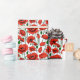 Envelopper le papier dans un motif délicat de coquelicots rouges vibrants avec des tiges vertes profondes et des feuilles, sur un certain temps arrière - plan, avec, chaque fleur de pavot unique courbé et tordu, comme si se balançant doucement dans la brise.