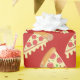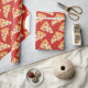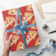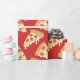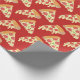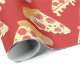 Ce papier d'emballage cadeau amusant présente un motif répétitif de tranches de pizza pepperoni gouttant avec du fromage.