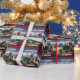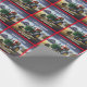 Papier Cadeau Père Noël conduisant un tracteur vert