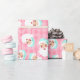 Papier Cadeau Père Noël en Mint Vert Casquette rose Retro Noël