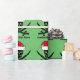 Papier d'emballage de Noël cool avec un motif de vacances vert d'un crâne portant un casquette du Père Noël rouge. J'aime ce joli enveloppement cadeau squelette de Noël.