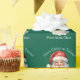 Customisez cette nostalgie du papier d'emballage vert du Père Noël avec votre propre texte personnalisé avec votre nom d'enfant en écriture blanche. Ce magnifique dessin à l'ancienne de Père Noël, casquette rouge et barbe blanche, est l'autocollant idéal pour vos cadeaux d'enfants sous l'arbre le jour de Noël.
