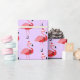 Flamant rose papier d'emballage de Noël avec un motif de flamants roses dans Père Noël coiffe sur un arrière - plan violet. Purple Père Noël rose Flamant rose Noël Enveloppement Papier de vacances Design | ©Melissa Patton - Artiste/Illustrateur
