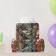 Le papier d'emballage présente une scène délicieuse et nostalgique d'un Père Noël à l'ancienne dans un charmant jardin d'hiver orné de verdure luxuriante de Noël et d'arbres à feuillage persistant majestueux. Le design respire la chaleur et la magie de la période des fêtes.