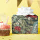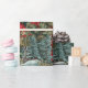 Le papier d'emballage présente une scène délicieuse et nostalgique d'un Père Noël à l'ancienne dans un charmant jardin d'hiver orné de verdure luxuriante de Noël et d'arbres à feuillage persistant majestueux. Le design respire la chaleur et la magie de la période des fêtes.