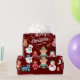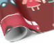 Atelier de père Noël avec des jouets et des elfes Papier d'enveloppement de Noël pour les enfants. Arrière - plan rouge. Un joli papier d'emballage sur le thème du jouet avec des chevaux rocking, des nounours, des camions de pompiers, des trains de jouets, des noix de cou, des bas, avec Père Noël et ses elfes. Un grand emballage cadeau de vacances pour les enfants.