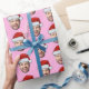 Personalised Face Santa Hat Pink Gift Wrap, Replace the face with your favorite photo if you want (make sure to crop as much to the face as possible and use an app to remove the background) and personalize this funny Christmas Holiday Wrapping Paper with your kid, husband, or boyfriend on it! Also a fun and unique surprise for grandma and grandpa, mom or dad.