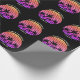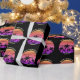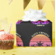 Papier d'anniversaire cool rose chaud et noir palmier pour une fête sur une île tropicale. Doté de beaux palmiers face à un joli coucher de soleil de plage rose. Emballage cadeau personnalisé parfait pour une fille de plage.