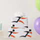 Symbole noir et orange d'une personne qui court. Cette conception semble vraiment efficace sur ces papiers d'enveloppement