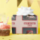 Papier d'emballage d'anniversaire avec un petit gâteau d'anniversaire Red Riding Hood avec "Happy Birthday", police gras tout casquette. Customisez-le en ajoutant votre ou vos nom(s).
