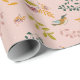 Oiseaux, branches et fleurs sur un arrière - plan blanc, pêche et rose.