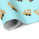 Papier Cadeau Petits trains orange motif en bleu