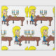 Une femme aux cheveux jaunes assise en jouant du piano. Cette conception semble vraiment efficace sur ces papiers d'enveloppement