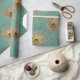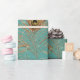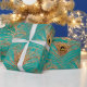 Plumes de paon doré chatoyantes sur aqua ou arrière - plan turquoise. Parfait pour le découpage, l'artisanat ou l'emballage de cadeaux. Veuillez consulter la vue "couture" pour vous assurer qu'elle est acceptable.