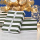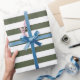 Papier enveloppant avec un motif à rayures blanches et vertes en pin cyprès. Parfait pour toutes les occasions. Personnalisable .