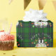 Le mignon pingouin de Noël enveloppé de lumières de Noël rouges et vertes. Motif à plaid vert - Illustration originale de H Cooper-