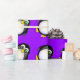 Pingouin mignon superbe de bande dessinée avec les yeux écarquillés verts sur un arrière - plan pourpre. Papier d'emballage parfait pour les anniversaires de l'enfant.