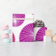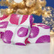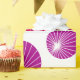 Ce papier d'emballage a un design moderne du milieu du siècle de cercles violets et roses avec des éclats blancs, le tout sur un champ de blanc.