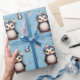 Papier à envelopper de pingouins d'aquarelle de printemps - Arrière - plan bleu clair" Enveloppez vos cadeaux dans le charme et le fantaisie avec notre papier à envelopper de pingouins d'aquarelle de printemps! Doté d'un adorable motif de pingouins ludiques couronnés de fleurs délicates, ce design est placé contre un arrière - plan bleu clair apaisant, capturant l'essence fraîche et joyeuse du printemps. Parfait pour créer des présentations cadeaux délicieuses et mémorables pour toutes les occasions. Les teintes pastel douces et les détails complexes de l'aquarelle font de ce papier d'emballage un choix exceptionnel pour les anniversaires, les baby showers, ou toute célébration festive. Idéal pour les filles, les amoureux de la nature et toute personne qui apprécie les dessins artistiques et mignons. Pour une touche spéciale supplémentaire, le motif peut être personnalisé avec du texte bilingue, des noms personnalisés ou des messages, afin que vos cadeaux se démarquent d'une manière vraiment unique. Célébrez la joie de donner avec ce beau papier d’emballage à thème pingouin qui est autant un cadeau qu’à l’intérieur. Que ce soit pour elle, pour les enfants ou pour les familles, c’est une façon parfaite d’ajouter une touche de personnalité et de créativité à vos cadeaux !