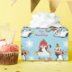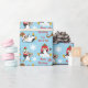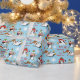 Trois adorables petits pingouins noirs et blancs s'amusent en hiver sur ce joli papier d'emballage de Noël. Un pingouin fait des boules de neige. Un autre porte un sucre de canne rayé vert et rouge en forme de coeur. Un autre glisse sur une parcelle de glace. Tous les pingouins portent des casquettes de bas d'hiver aux couleurs vives. Quelques flocons rouges ou blancs dérivent autour d'eux. Votre texte personnalisé est en rouge, et tout est placé sur un arrière - plan bleu glacé.