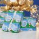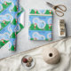 Ce papier d'emballage Noël amusant en juillet fait un enveloppement cadeau de fête ensoleillé parfait pour un rassemblement de billard. Faites-en une extravagance amusante sur le thème du pôle nord avec le Père Noël dans ses troncs de natation à côté d'une piscine cool et de plongée. Jolly Saint Nick est tiré dans un maillot de bain rouge sur ces serviettes bleu cool.