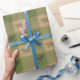 Papier d'emballage en plastique vert à thème cabine rustique avec des graphismes d'orignal et d'ours.
