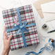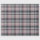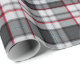 Plaque de tartan texturée grise avec fines bandes rouges et bleues.