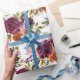 Papier d'emballage à motif floral aquarelle aux accents de prune et de gingembre bordeaux.