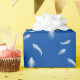 Plumes blanches flottantes sur un arrière - plan bleu. La couleur Arrière - plan peut être modifiée.