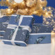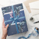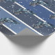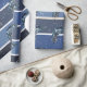 Papier Cadeau Plumes bleues sur rayures bleues et blanches