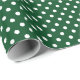 Papier d'enveloppement de Noël motif à pois vert et blanc brillant. Couleur arrière - plan personnalisée derrière l'impression à petits pois blanche. Roulettes cadeaux personnalisées pour cadeaux de vacances et plus encore. Changez la quantité pour obtenir le prix le moins cher. Petit design polkadotté avec finition brillante. Les points peuvent être petits ou grands.