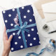Papier Cadeau Point de polka blanc sur espace de bleu marine le