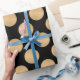 Paire avec enveloppement cadeau assorti et accessoires en style pois dorés.