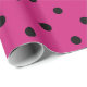 Papier d'emballage cadeau d'un motif pois noir sur un arrière - plan rose chaud. Parfait pour les anniversaires, mariages et baptêmes.
