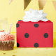 Papier d'emballage cadeau d'un motif pois noir sur un arrière - plan rouge. Parfait pour les anniversaires, mariages et baptêmes.