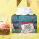 Le chat tigré dans le lit dans la forêt la nuit sous une couverture avec des poissons conçoivent