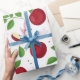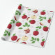 Papier Cadeau Pommes rouges, fleurs et Motif de verdure